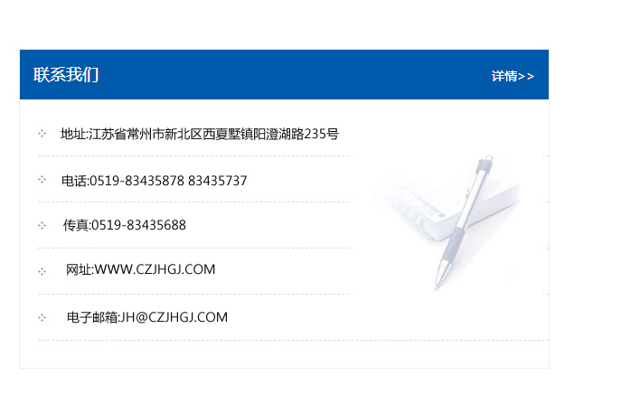 地址:常州市新北區友邦商務大廈1幢16、17層  電話:0519-85101652  傳真:0519-85112595  郵編:213022  網址:www_cz-jiayue_cn.dachicnc.com  郵箱:xiajifengaa@163.com